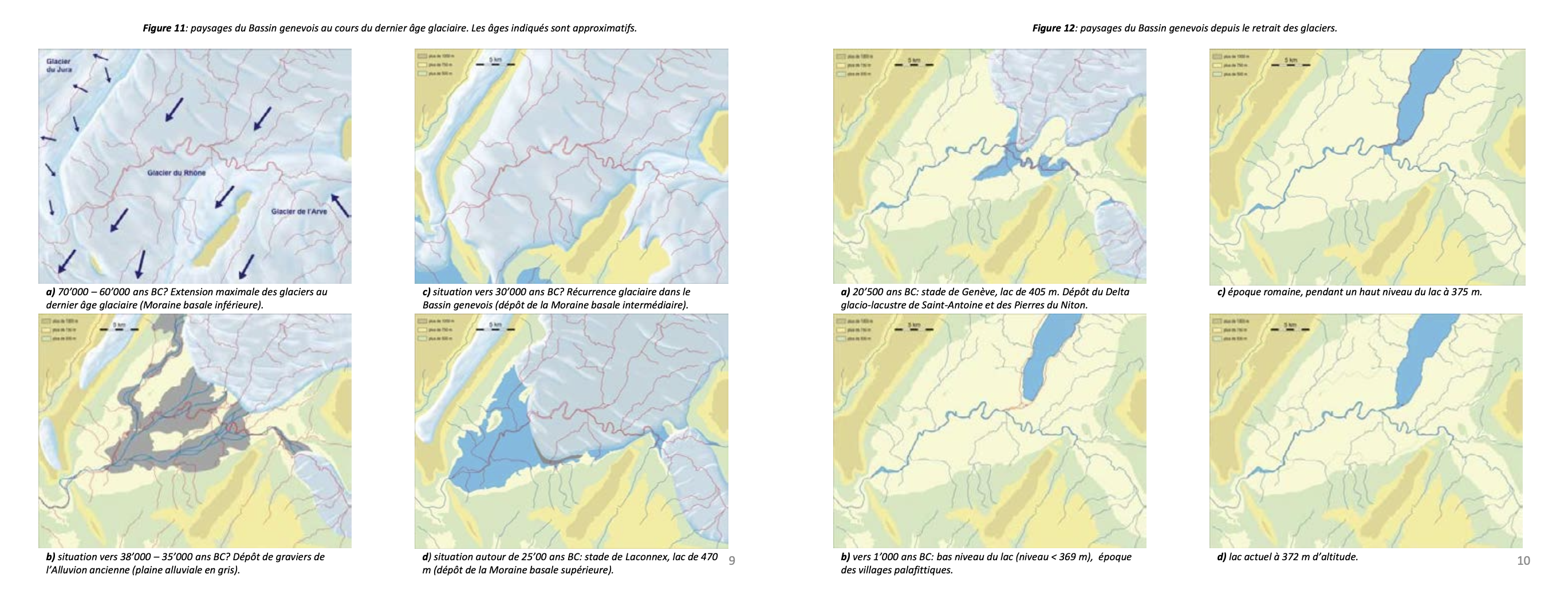 La ville de Genève elle-même s’est construite sur le relief du Delta glacio-lacustre de Saint-Antoine, formé par l’accumulation de graviers et de sables expulsés par le torrent sous-glaciaire lors de la déglaciation (vers 20 500 ans BC).