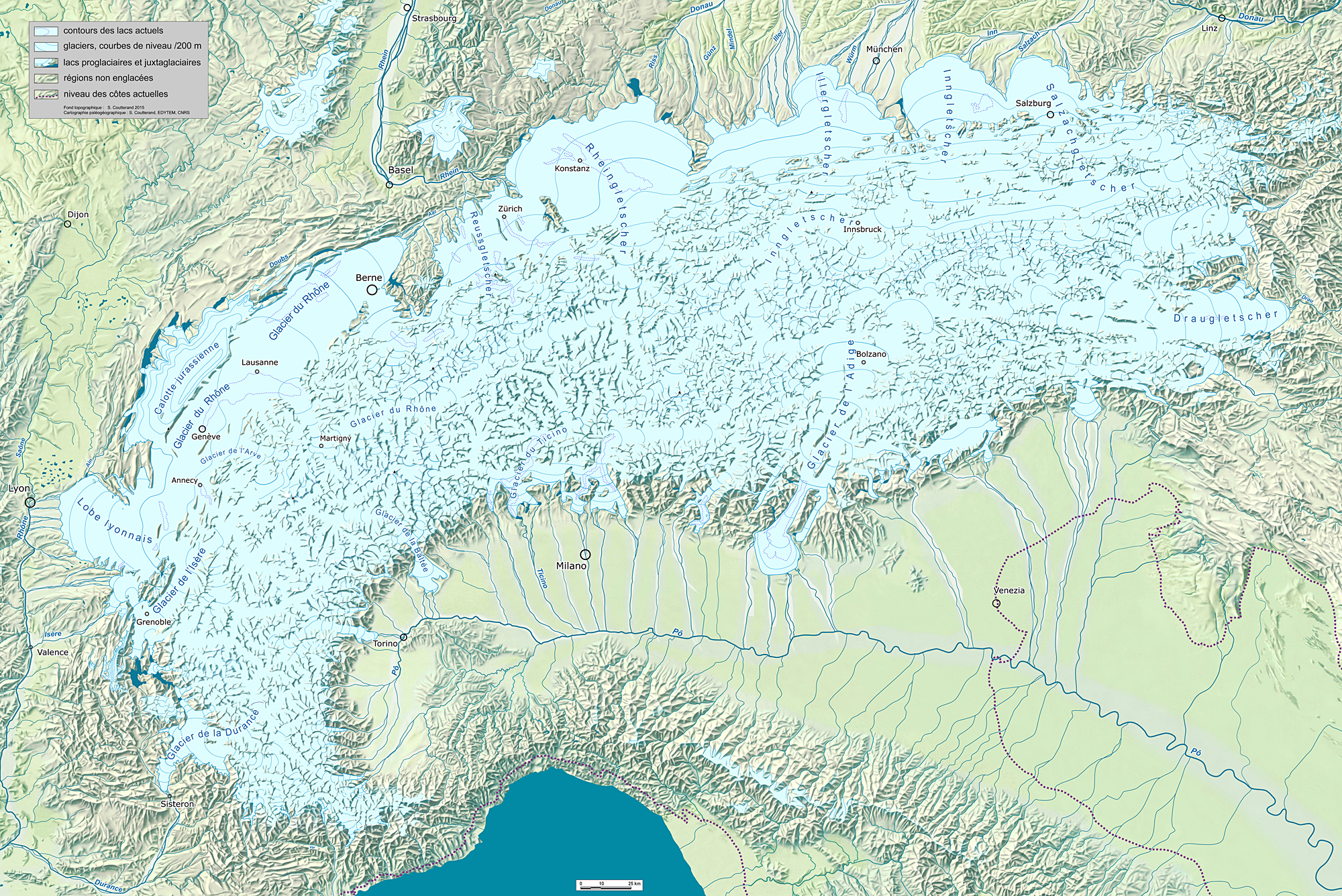 La ville de Genève elle-même s’est construite sur le relief du Delta glacio-lacustre de Saint-Antoine, formé par l’accumulation de graviers et de sables expulsés par le torrent sous-glaciaire lors de la déglaciation (vers 20 500 ans BC).