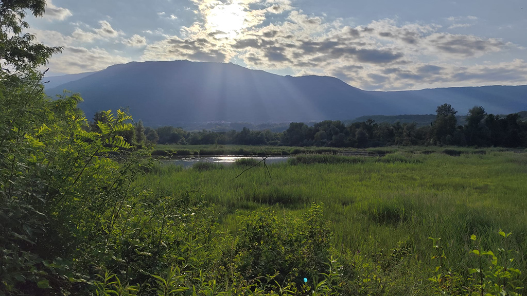 Puis vient le défilé de l’Écluse, gorge étroite et repère paysager du bassin genevois. Une césure mais surtout un passage pour le Rhône, bien sûr, qui s’y resserre, mais aussi pour le vivant. Les oiseaux migrateurs le repère dans leurs routes saisonnières Avec eux viennent des graines, des plantes, des espèces animales venues d’ailleurs. Comme l’eau la vie circule, se déplace, se transmet.